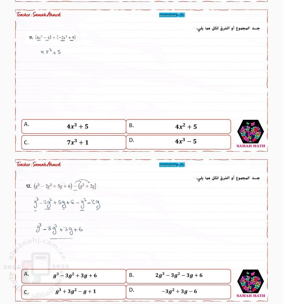 نموذج الأسئلة من الرابط التالي : https://almanahj.com/ae/id=37448 | |||