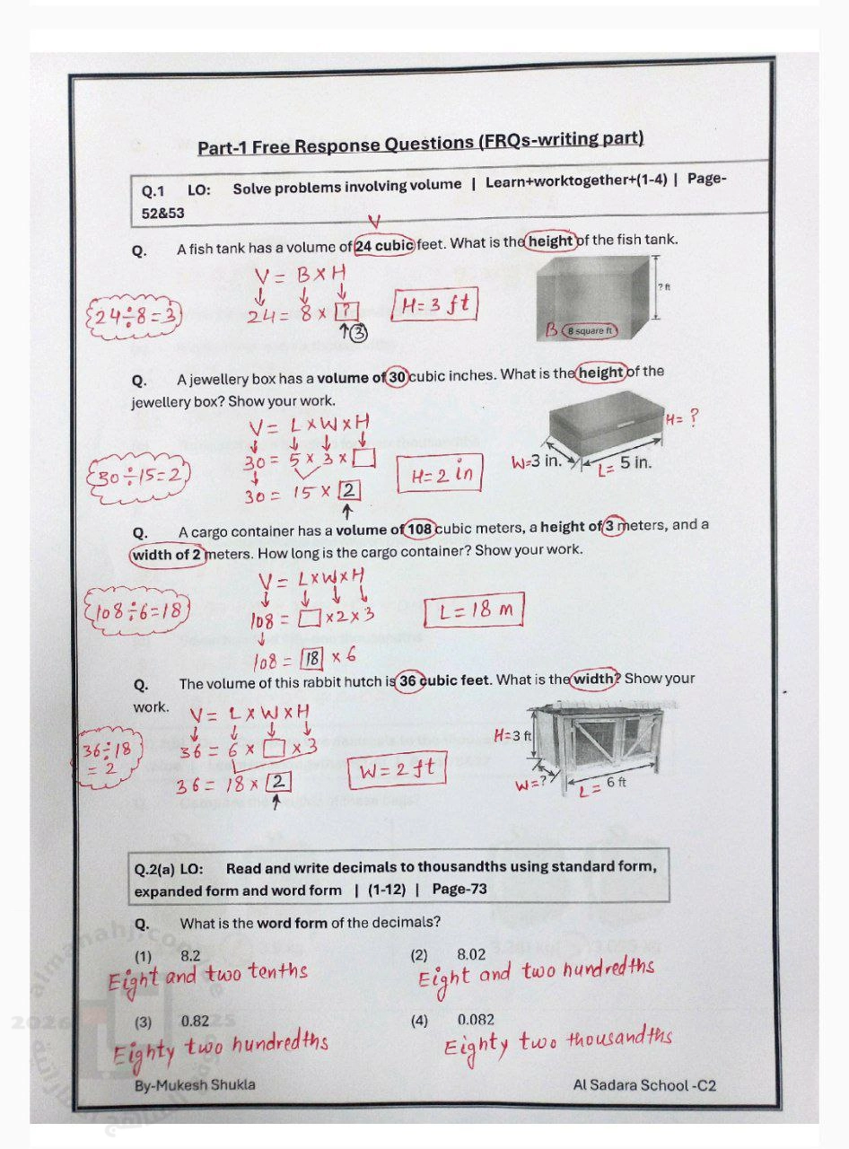 2. الصف الخامس, رياضيات, حل اختبار تجريبي هام وفق الهيكل الوزاري الجديد منهج ريفيل
