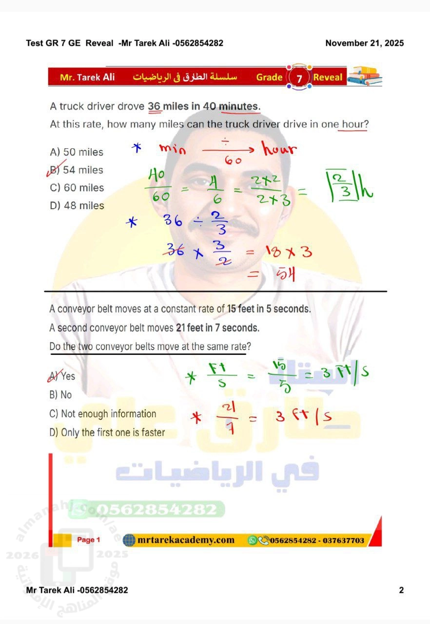 14. الصف السابع, رياضيات, حل اختبار نهائي منهج ريفيل المسار العام