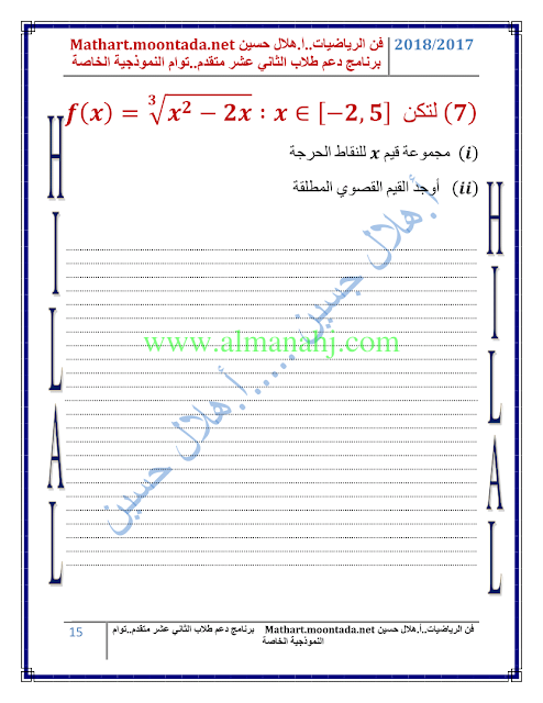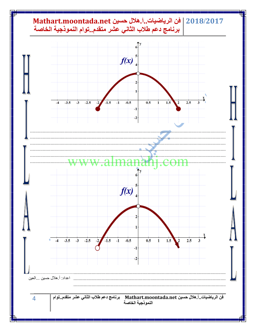 معلومات الملف: الصف الثاني عشر المتقدم, الفصل الثاني, رياضيات 2017-2018, برنامج دعم طلاب ثاني عشر | |||