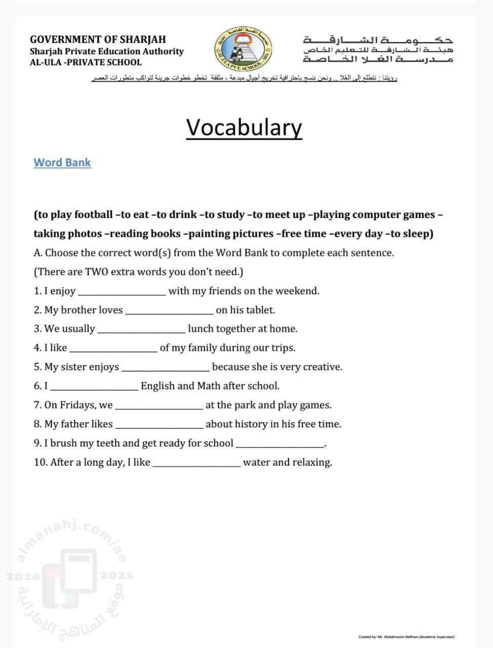 | أهلاً بكم جميعاً طلاباً ومدرسين وأهالي طلبة ومهتمين، في قسم دولة الإمارات ، نحن الآن في الفصل الثاني من العام الدراسي 2025/2026 وتاريخ اليوم 2025/12/14 م | |