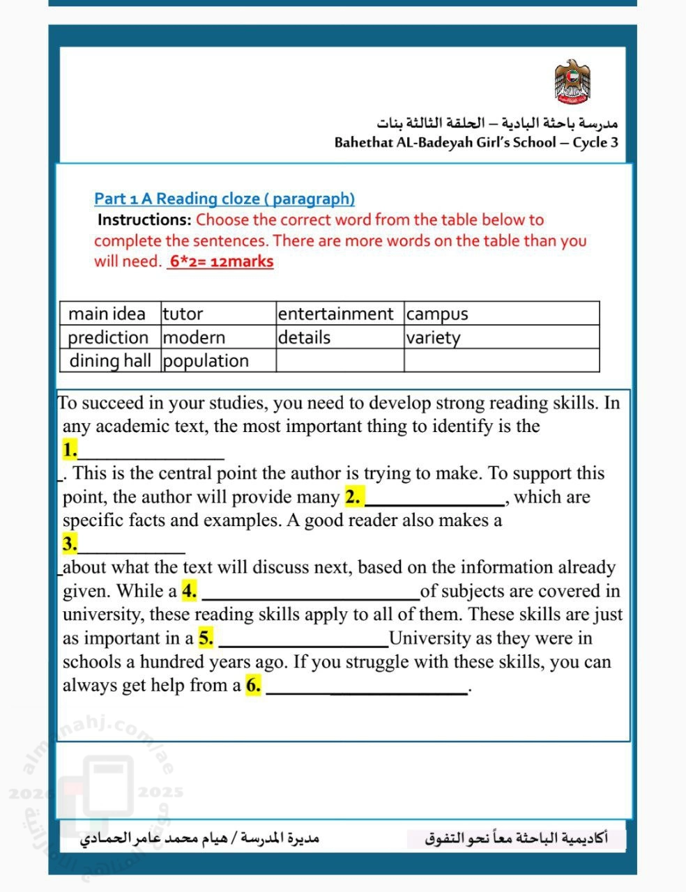 | العام الدراسي: 2025-2026 | ||