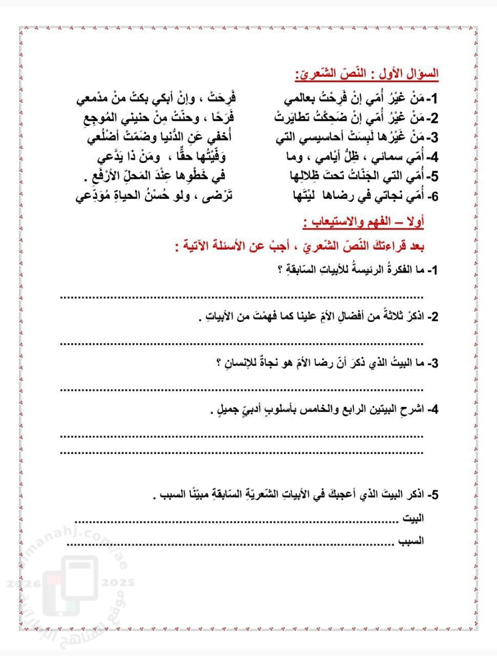 | 🆕 وزارة التربية والتعليم تكشف تفاصيل التقويم الأكاديمي 2025 – 2026 | اختبار نهاية الفصل لطلبة الصف الخامس التالي سيكون في مادة لغة عربية بتاريخ 2025-11-26 - اضغط للحصول على ملفات مادة لغة عربية واضغط هنا للحصول على ملفات هياكل مادة لغة عربية |