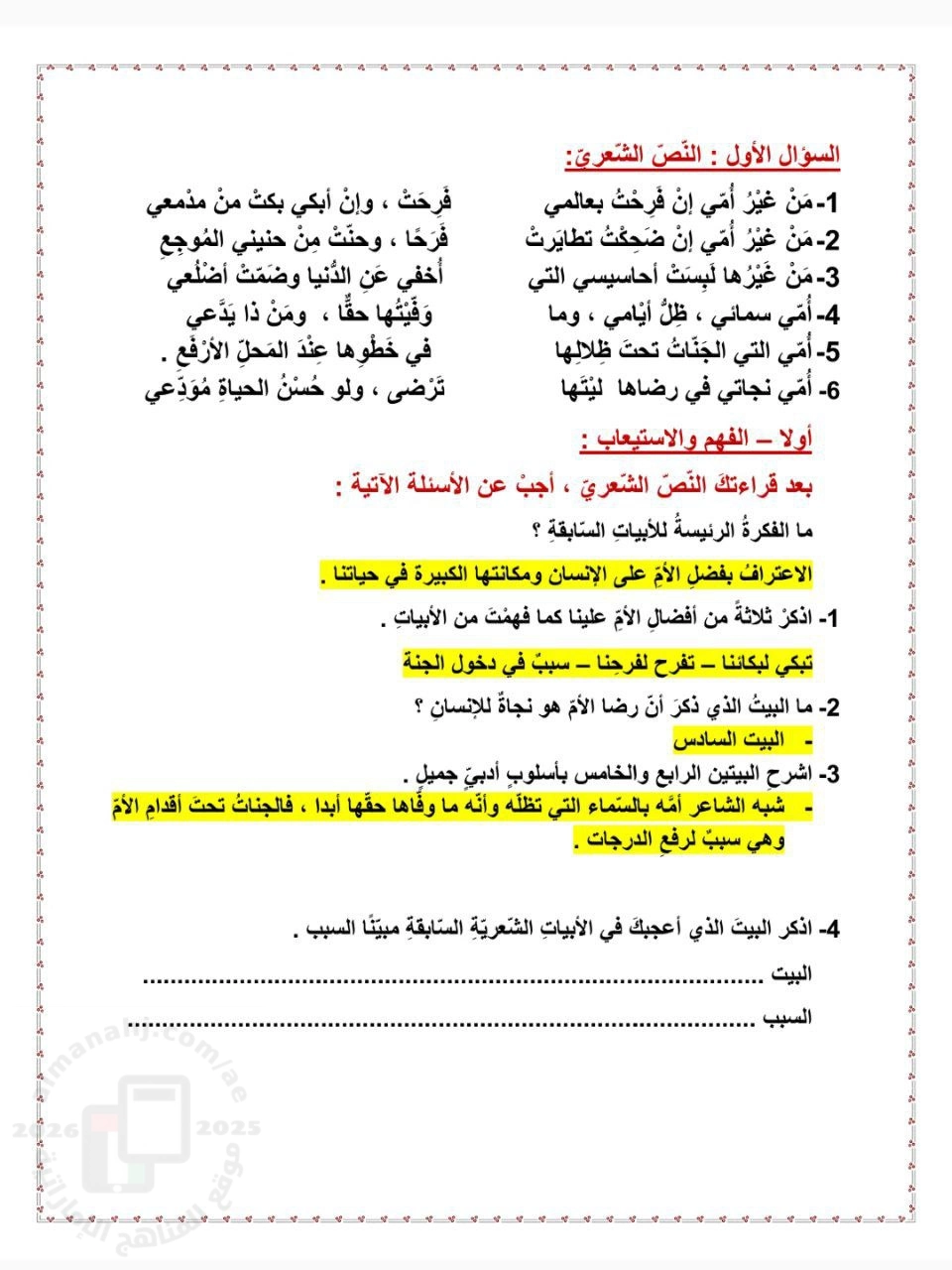 نموذج الأسئلة من الرابط التالي : https://almanahj.com/ae/id=37537 | ||