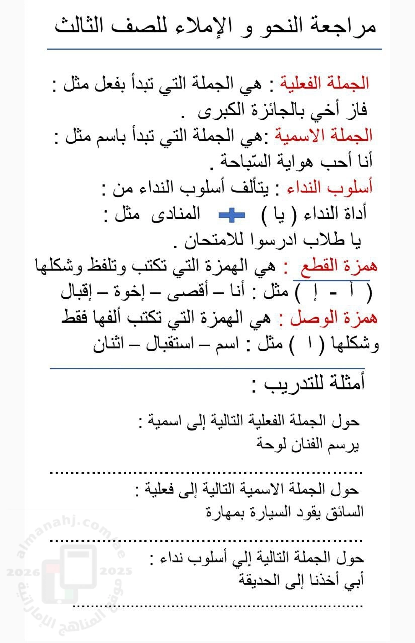 معلومات الملف: مراجعة النحو و الإملاء مع أوراق عمل اختبارية بدون الحل
