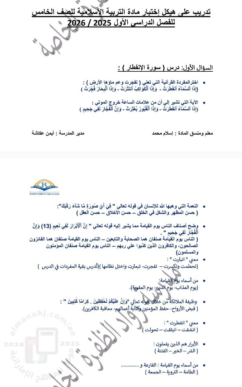 | أنت هنا: موقع المناهج ⇦ المناهج الإماراتية ⇦ الصف الخامس ⇦ تربية اسلامية ⇦ الفصل الأول ⇦ اختبارات |
