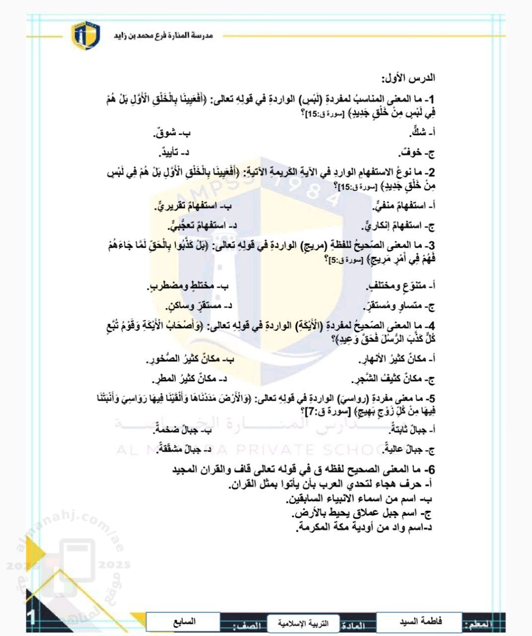 | أنت هنا: موقع المناهج ⇦ المناهج الإماراتية ⇦ الصف السابع ⇦ تربية اسلامية ⇦ الفصل الأول ⇦ اختبارات |