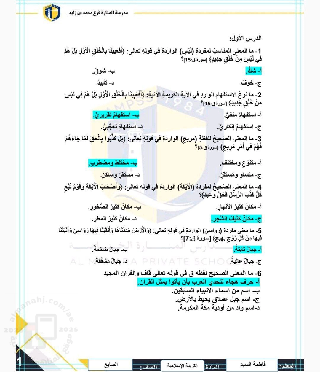 | أنت هنا: موقع المناهج ⇦ المناهج الإماراتية ⇦ الصف السابع ⇦ تربية اسلامية ⇦ الفصل الأول ⇦ حلول |