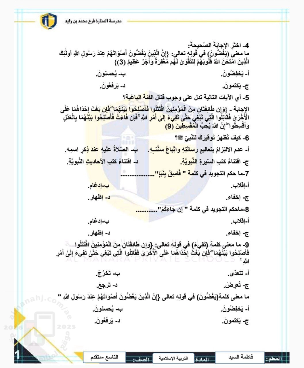 | تنويه: المناهج الإماراتية هو موقع مجاني وغير رسمي ولا يتطلب اشتراك لتحميل الملفات، لذلك يرجى عدم دفع أي مبلغ أو الاشتراك من أجل تحميل الملفات. | |