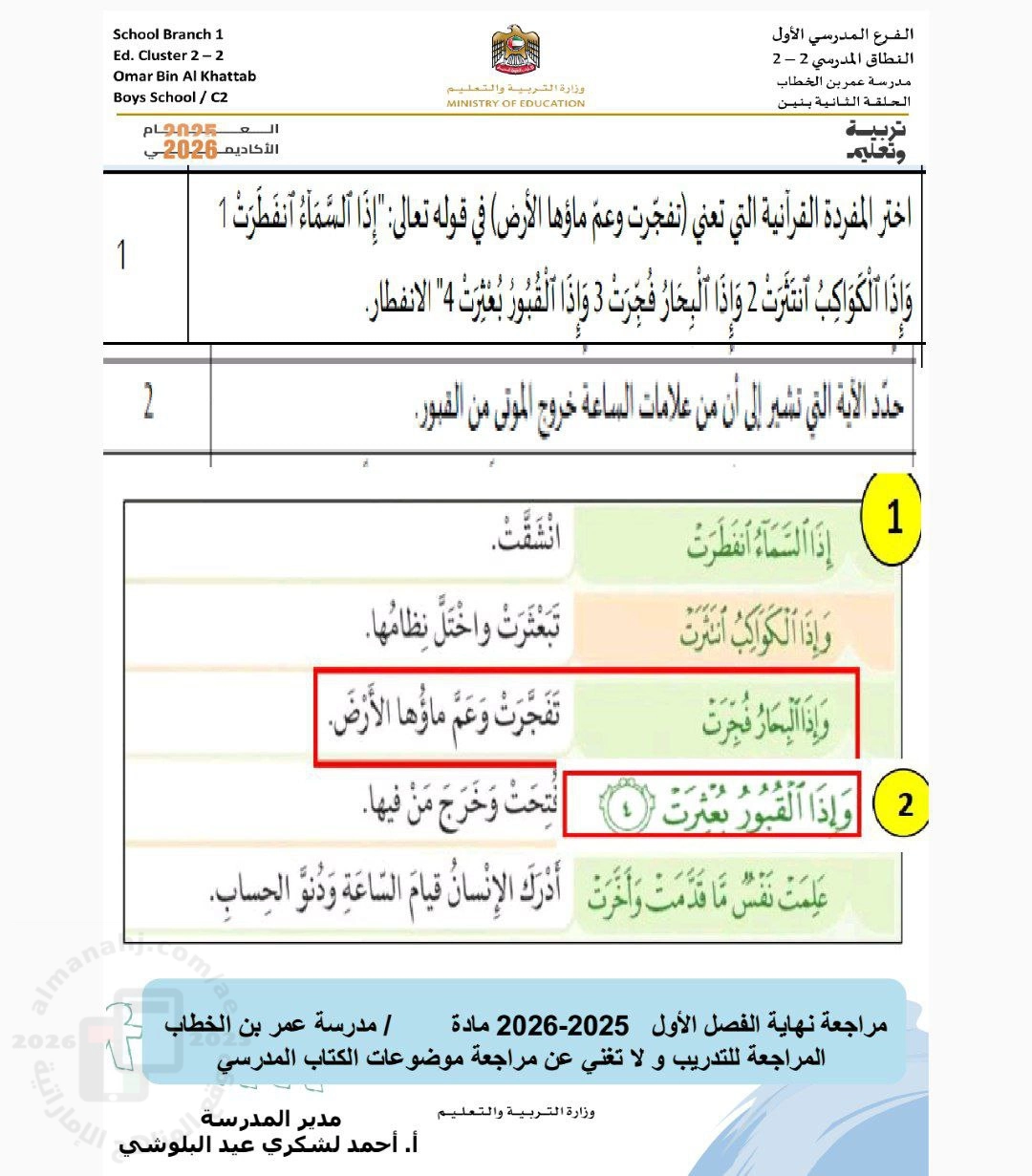| أهلاً بكم جميعاً طلاباً ومدرسين وأهالي طلبة ومهتمين، في قسم دولة الإمارات ، نحن الآن في الفصل الأول من العام الدراسي 2025/2026 وتاريخ اليوم 2025/11/26 م | |