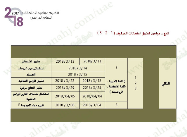 مواعيد امتحانات الصفوف الاول والثاني والثالث الفصل الثاني | ||