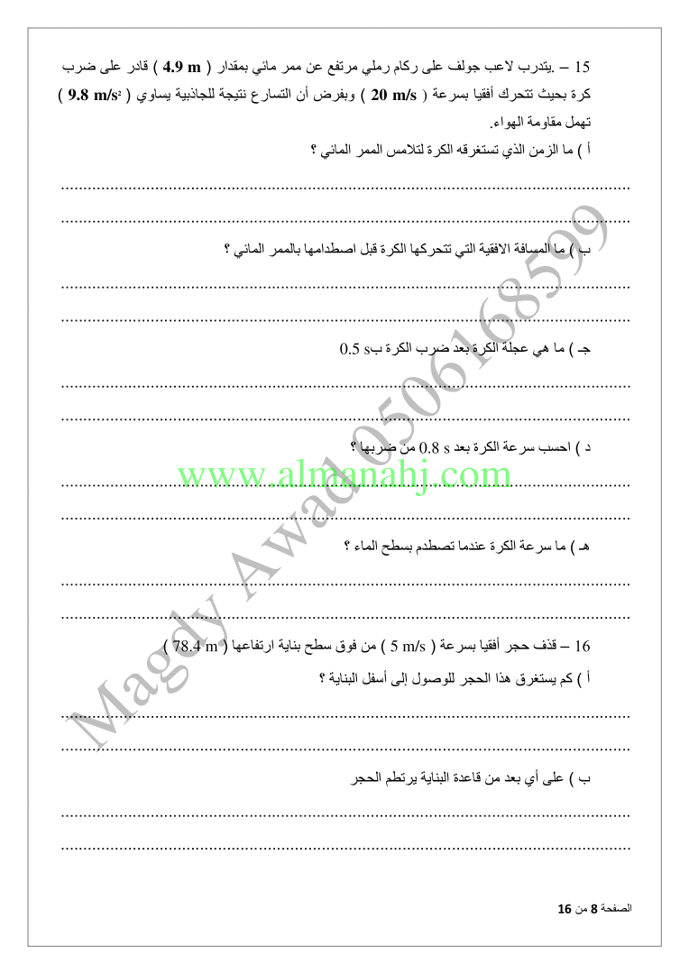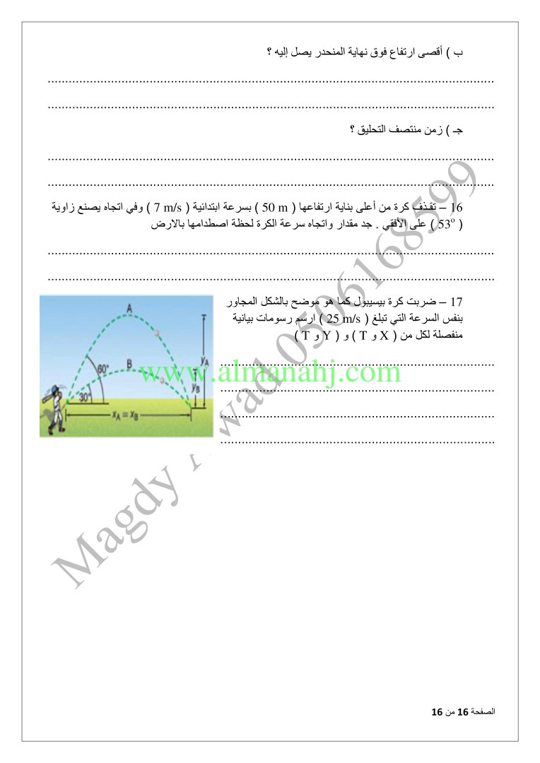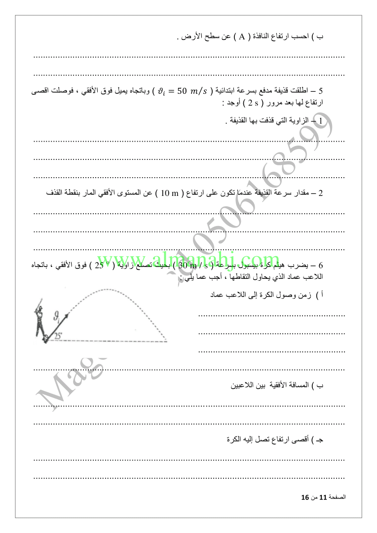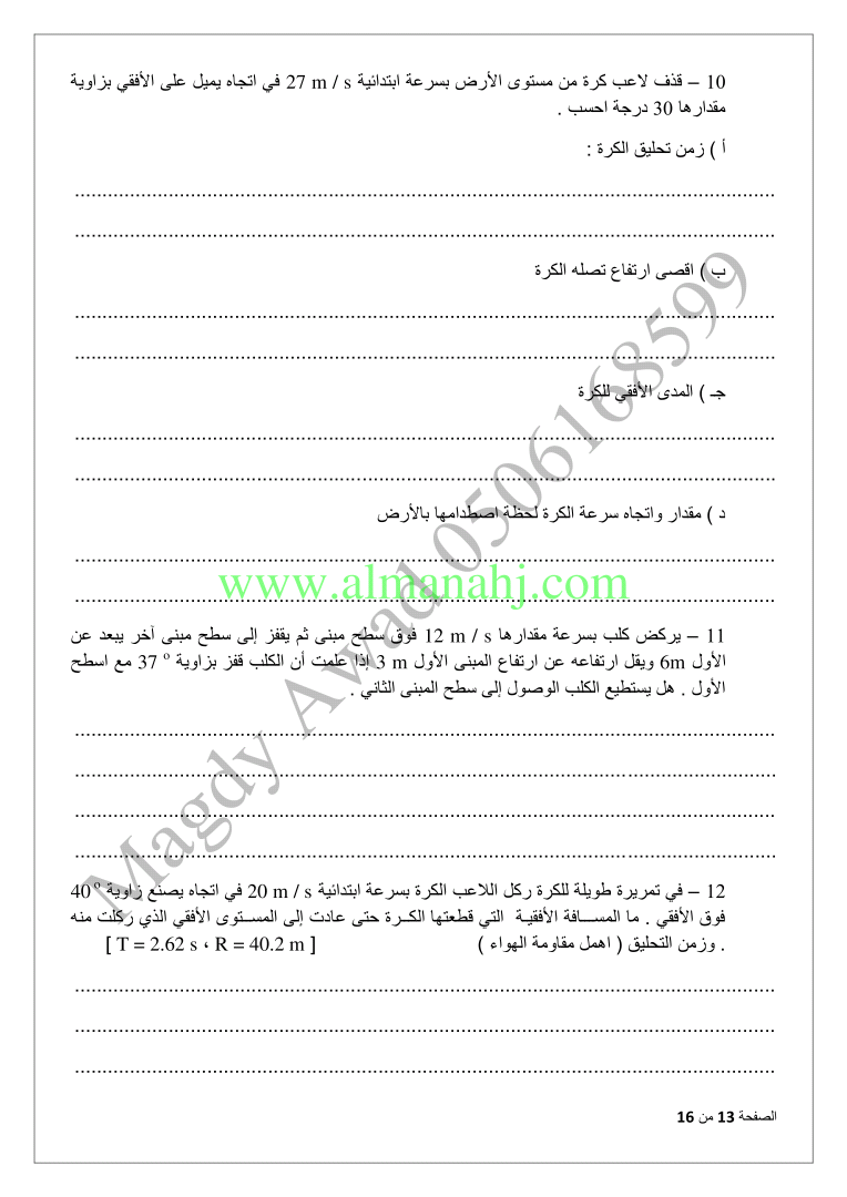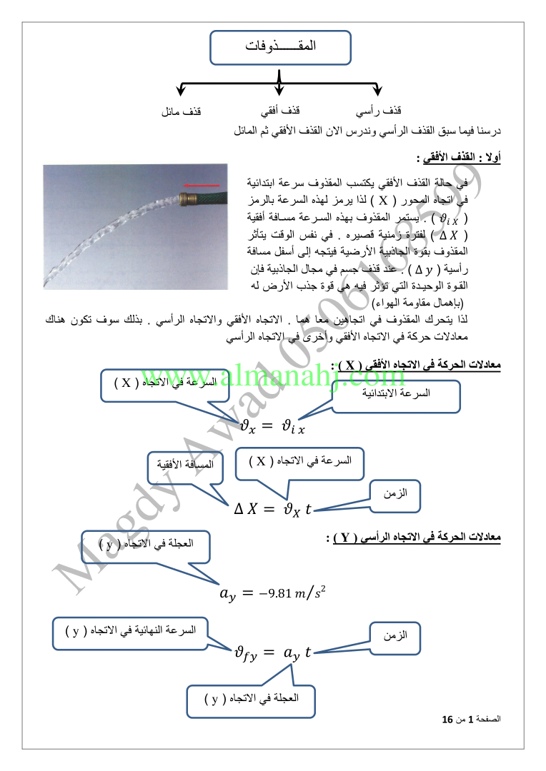 معلومات الملف: الصف العاشر المتقدم, الفصل الثاني, فيزياء, 2017-2018, المقذوفات | |||