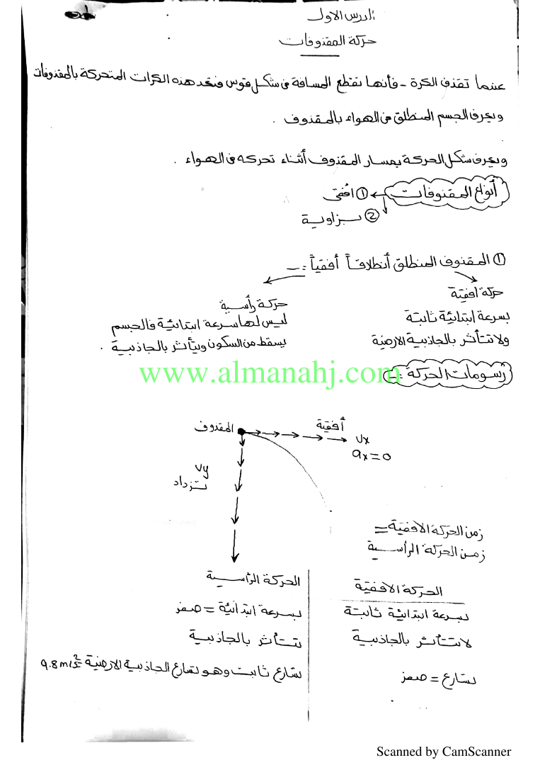 معلومات الملف: الصف العاشر العام, الفصل الثاني, فيزياء, 2017-2018, حركة المقذوفات | |||