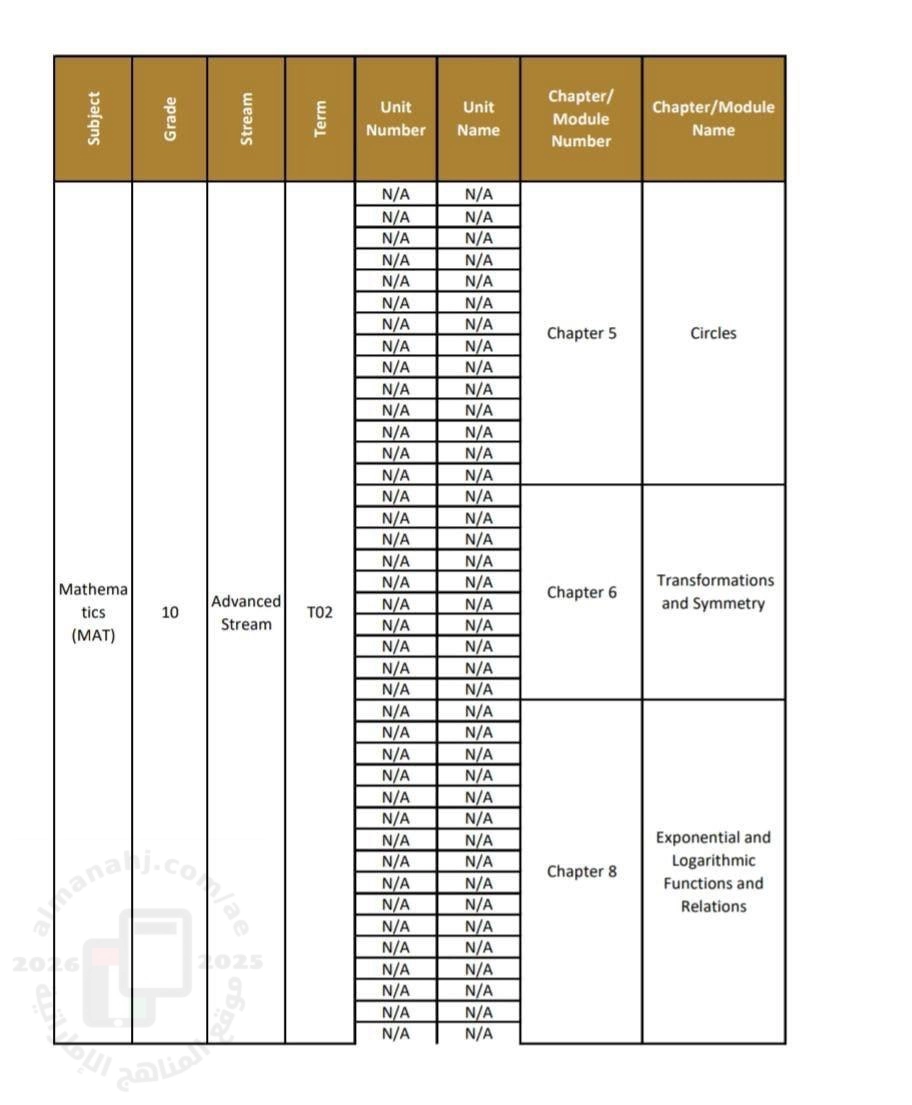 الخطة الفصلية والدروس المقررة للفصل الثاني منهج ريفيل, الصف العاشر المتقدم, رياضيات, الفصل الثاني, 2025-2026, منهج انجليزي - المناهج الإماراتية