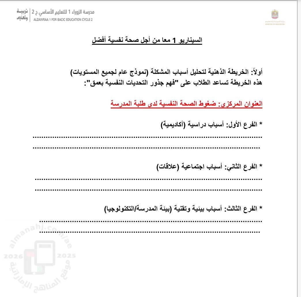 | أوراق عمل السيناريو الأول: معاً من أجل صحة نفسية أفضل - التعلم والتقييم القائم على المشاريع - إعداد: عائشة الظاهري | ||