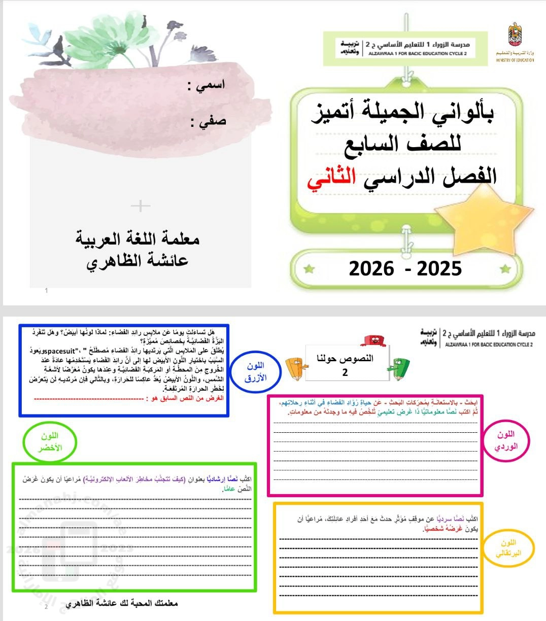 | أهلاً بكم جميعاً طلاباً ومدرسين وأهالي طلبة ومهتمين، في قسم دولة الإمارات ، نحن الآن في الفصل الثاني من العام الدراسي 2025/2026 وتاريخ اليوم 2026/01/07 م | |