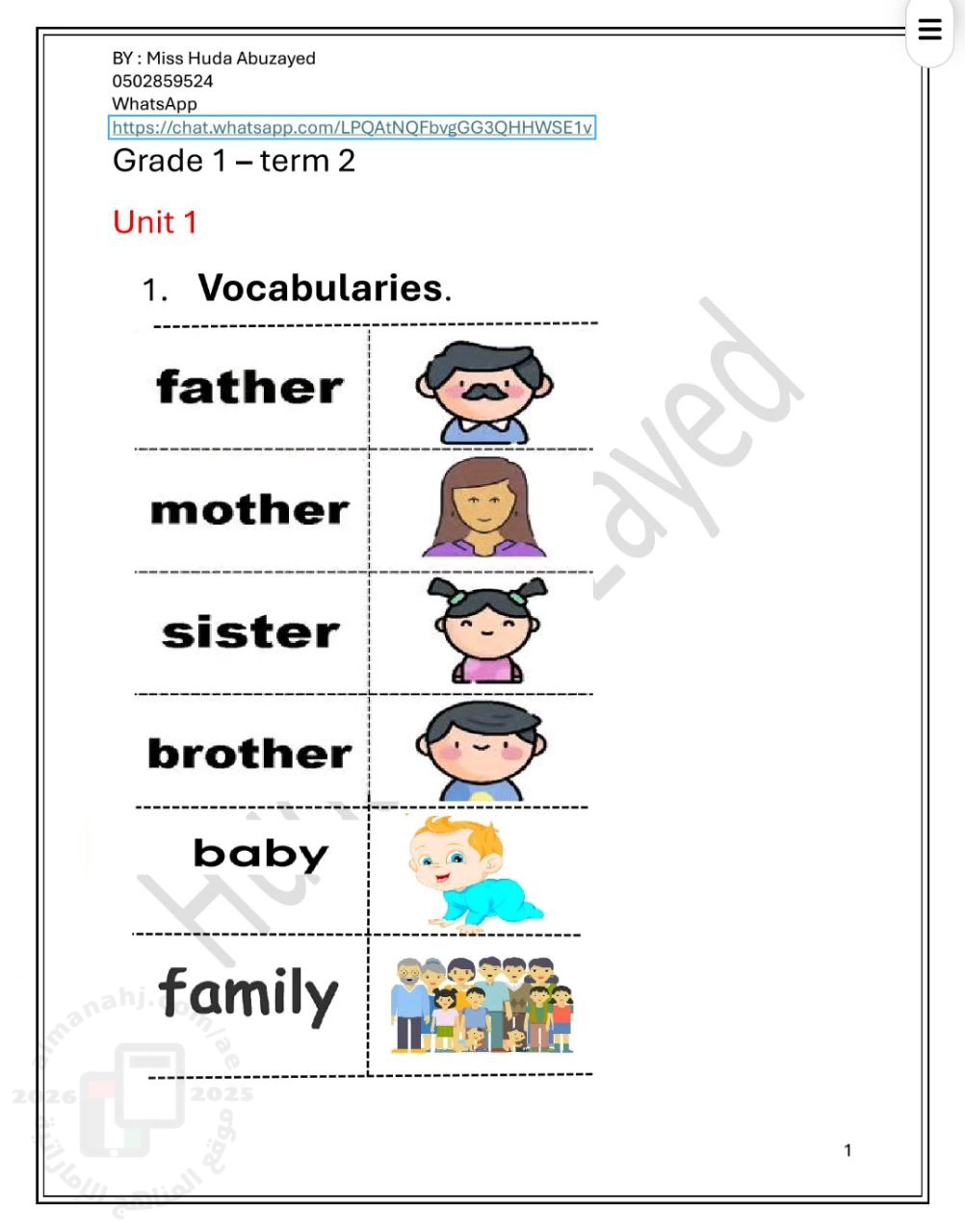 معلومات الملف: أوراق عمل وحدة My Family عائلتي مع تدريبات | ||