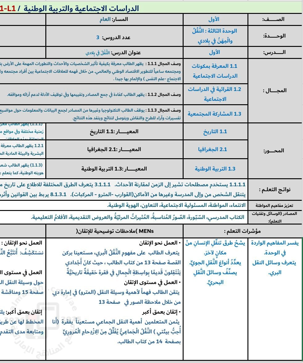 | تحضير الدروس الأول والثاني والثالث من الوحدة الثالثة النقل والمهن في بلادي | ||