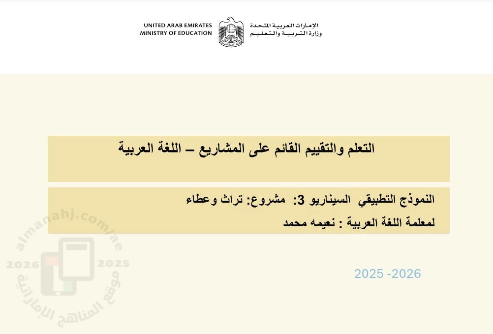 تم إيجاد الملف: النموذج التطبيقي السيناريو الثالث لمشروع تراث وعطاء - التعلم والتقييم القائم على المشاريع