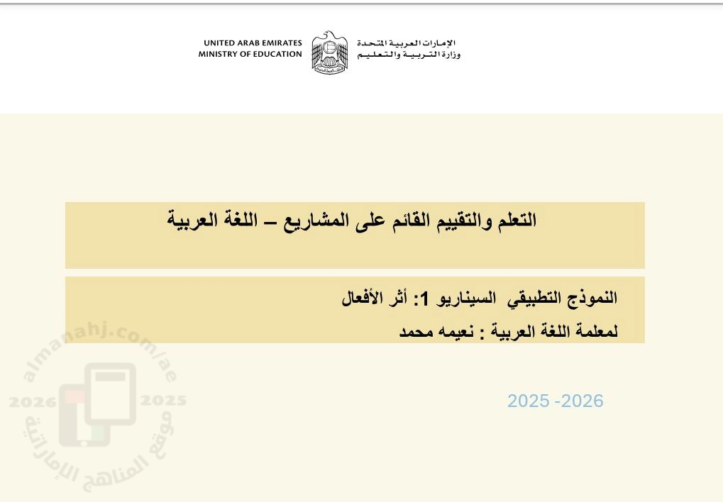 معلومات الملف: النموذج التطبيقي السيناريو الأول لمشروع أثر الأفعال - التعلم و التقييم القائم على المشاريع | ||