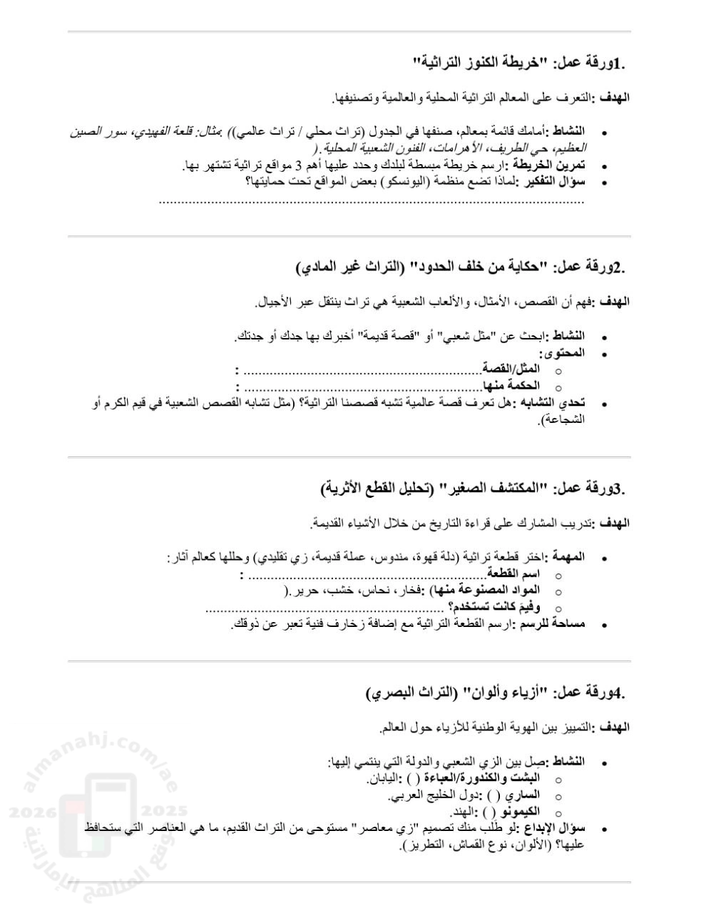 | أوراق عمل السيناريو الرابع: التراث - التعلم والتقييم القائم على المشاريع | ||