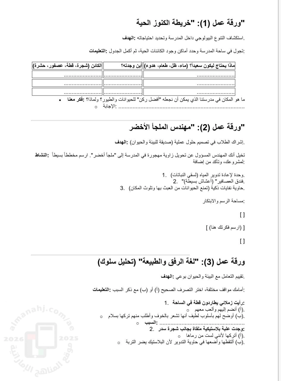 | أوراق عمل السيناريو الثاني: الملجأ الأخضر مدرستنا - التعلم والتقييم القائم على المشاريع | ||