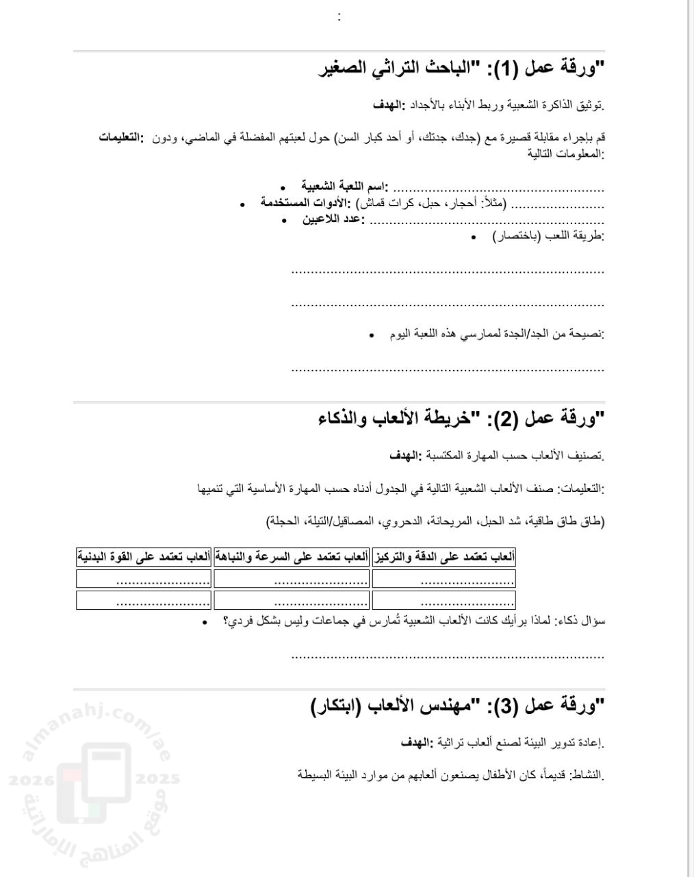 | أوراق عمل السيناريو الثالث: تراث وعطاء - التعلم والتقييم القائم على المشاريع | ||
