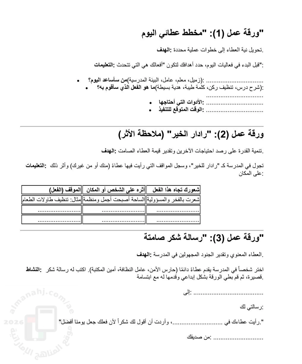 | أوراق عمل السيناريو الرابع: يوم العطاء المدرسي - التعلم والتقييم القائم على المشاريع | ||