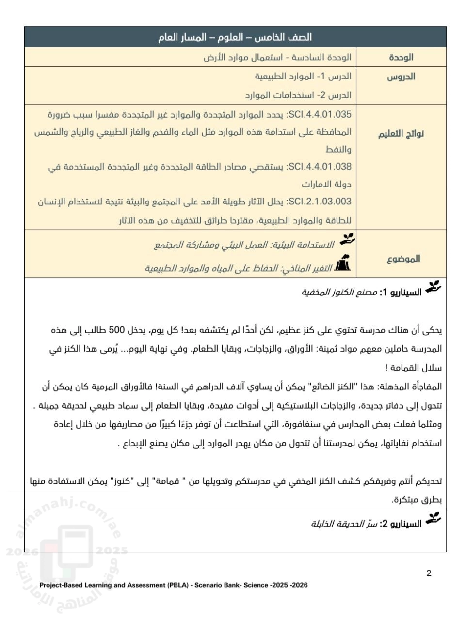 معلومات الملف: بنك السيناريوهات - التعلم و التقييم القائم على المشاريع | ||