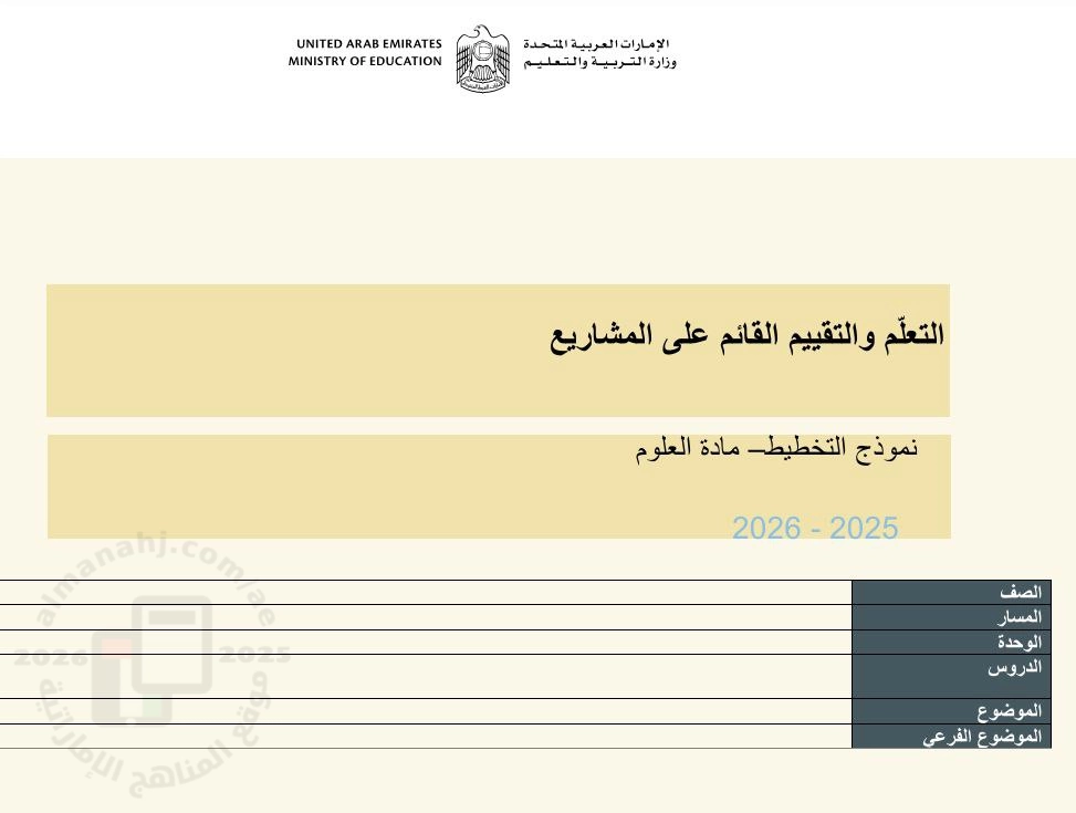 تم إيجاد الملف: نموذج التخطيط - التعلم والتقييم القائم على المشاريع