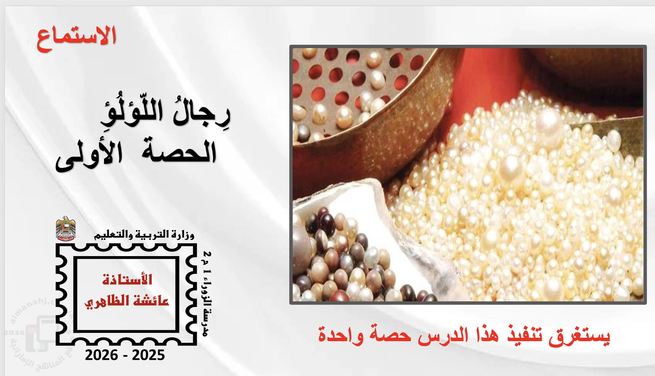| أهلاً بكم جميعاً طلاباً ومدرسين وأهالي طلبة ومهتمين، في قسم دولة الإمارات ، نحن الآن في الفصل الثاني من العام الدراسي 2025/2026 وتاريخ اليوم 2026/01/07 م | |