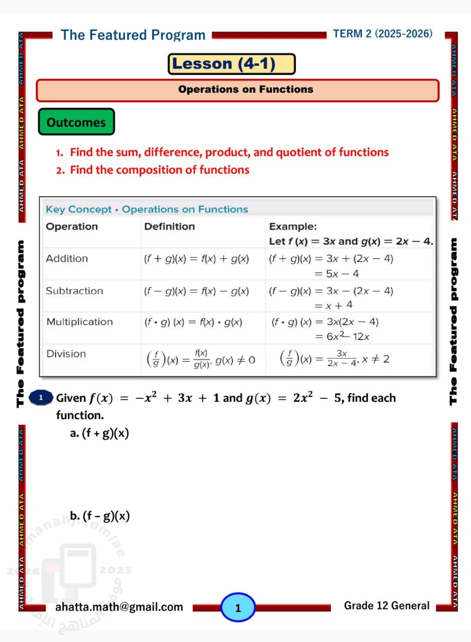 12. الصف الثاني عشر العام, رياضيات, ملزمة دروس الوحدة الرابعة Inverse and radical functions باللغة الانجليزية