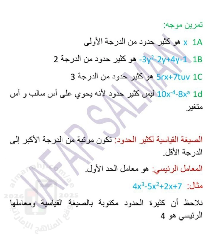 | شرح درس جمع كثيرات الحدود وطرحها وحل تمارين - إعداد: جعفر سلمان | ||