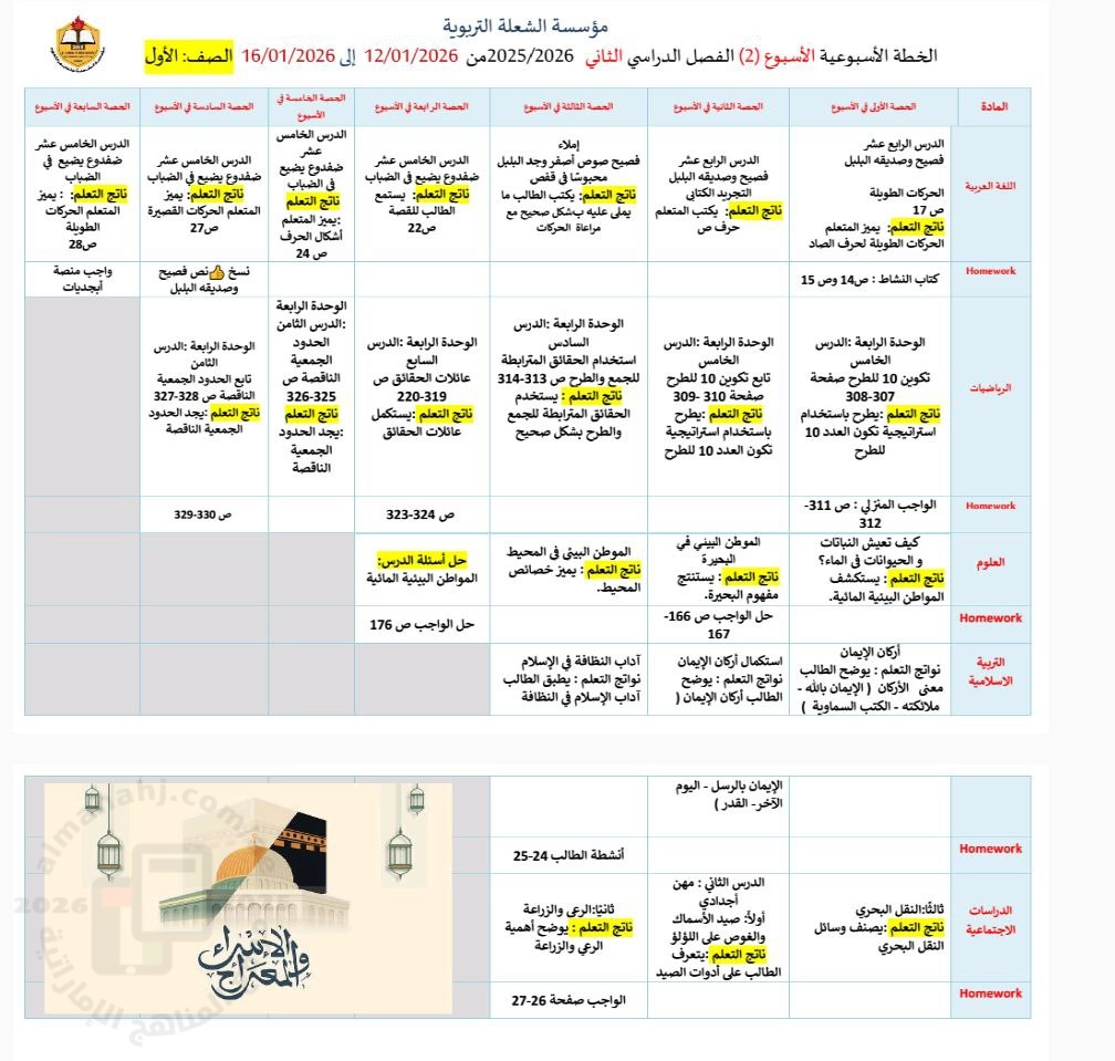 تم إيجاد الملف: الخطة الأسبوعية الأسبوع الثاني جميع الصفوف من مؤسسة الشعلة التربوية
