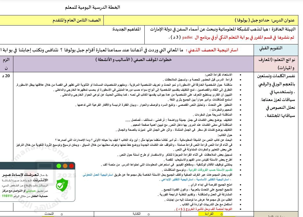 | أنت هنا: موقع المناهج ⇦ المناهج الإماراتية ⇦ الصف الثامن ⇦ لغة عربية ⇦ الفصل الثاني ⇦ ملفات المدرس |
