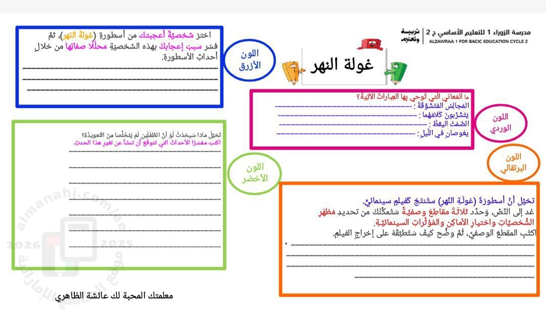 معلومات الملف: تقدم هذه الورقة تحليلاً شاملاً لأسطورة "غولة النهر" عبر أنشطة تنمي الفهم النقدي والتخيل الإبداعي. | ||