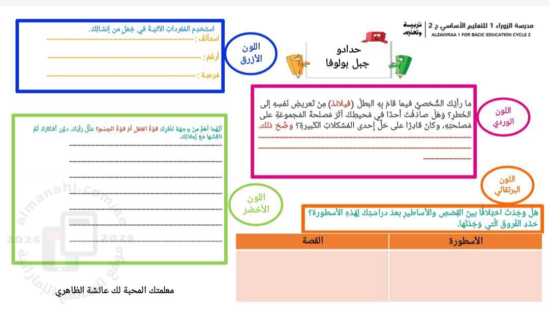 معلومات الملف: تتناول ورقة العمل هذه أسطورة "حدادو جبل بولوفا" من خلال سلسلة أنشطة متنوعة تهدف إلى تنمية الفهم والتعبير والنقاش. | ||
