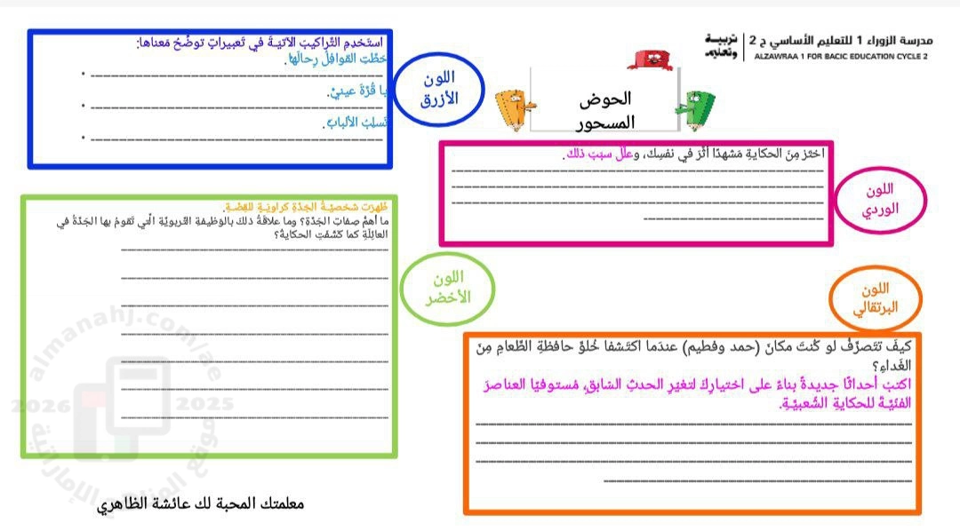 معلومات الملف: تتناول ورقة العمل هذه قصة "الحوض المسحور" الشعبية من خلال أنشطة تركز على الفهم اللغوي والتحليل الأدبي والإبداع القصصي. | ||