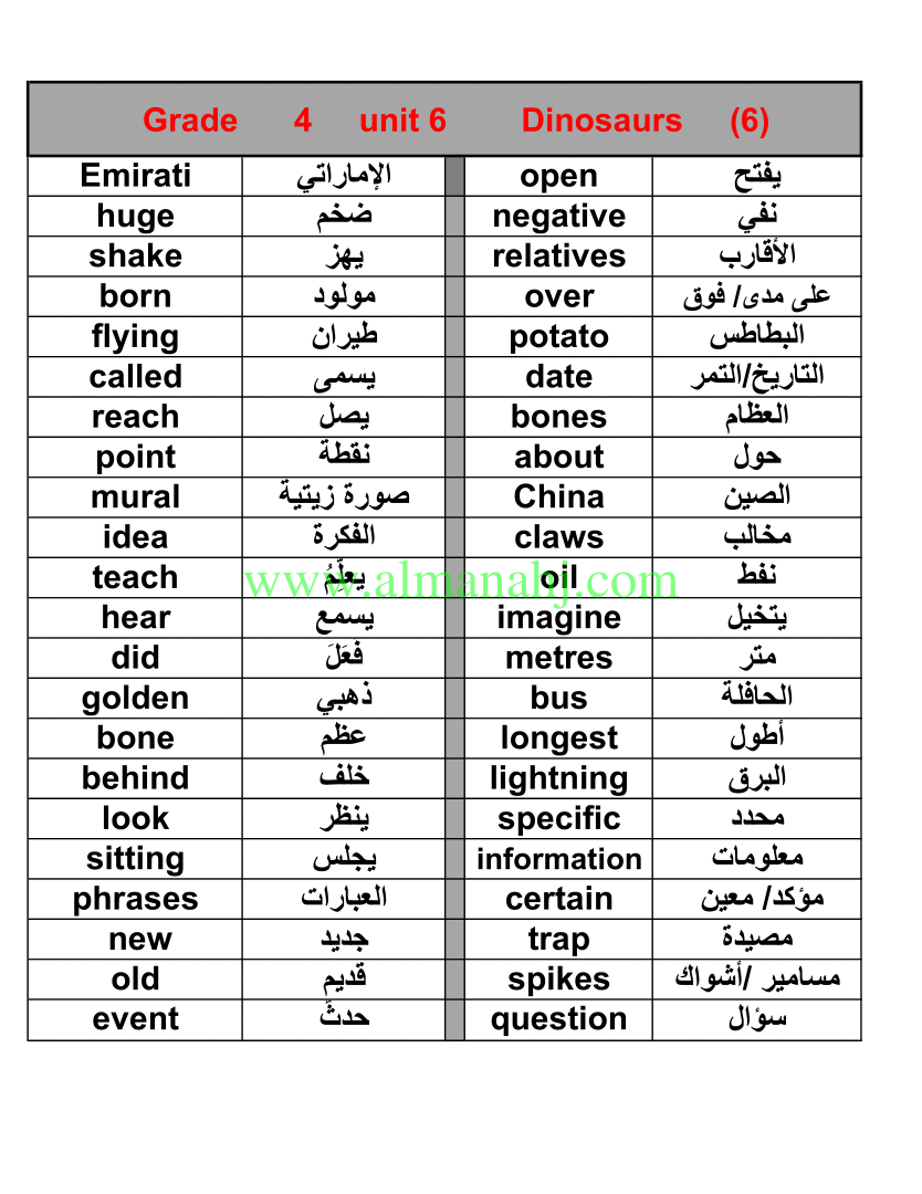 | اضغط هنا لتحميل وعرض ( مفردات وحدة الديناصورات ) | |||