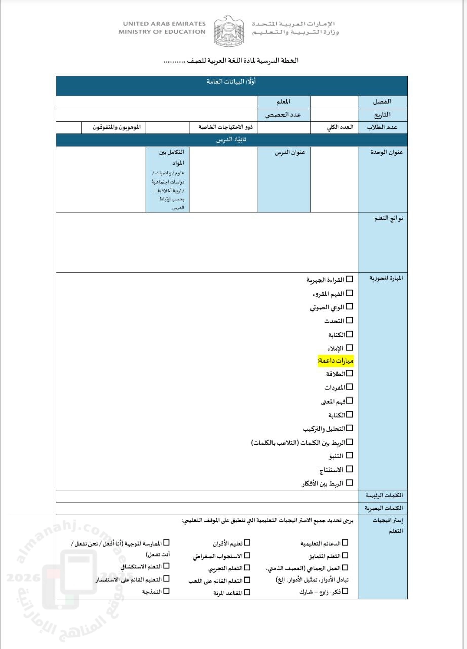 | فورما التحضير الوزاري الجديد - الخطة الدرسية | ||