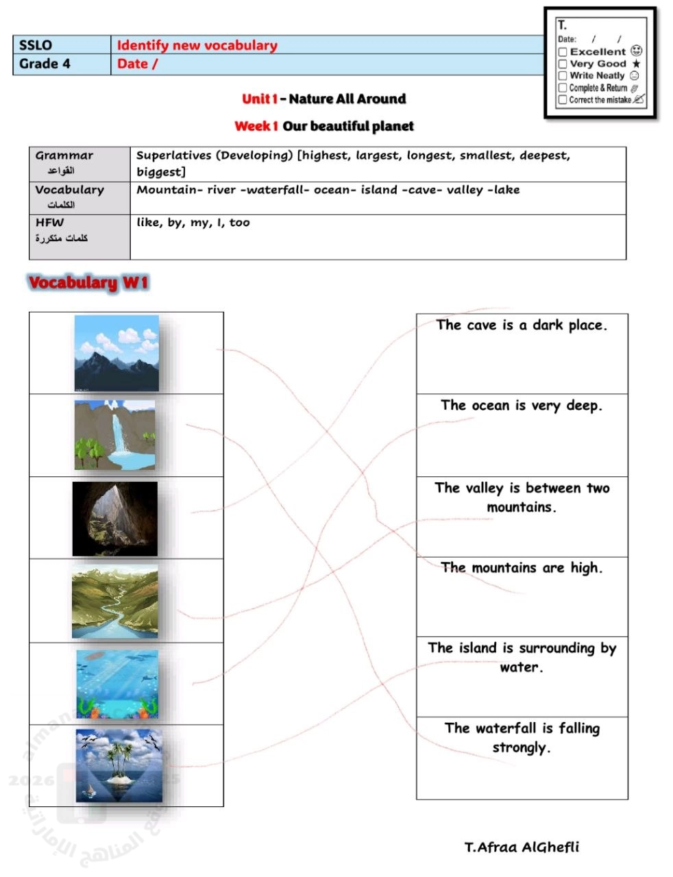 تم إيجاد الملف: حل تدريبات الوحدة الأولى Nature all around الأسبوع الأول