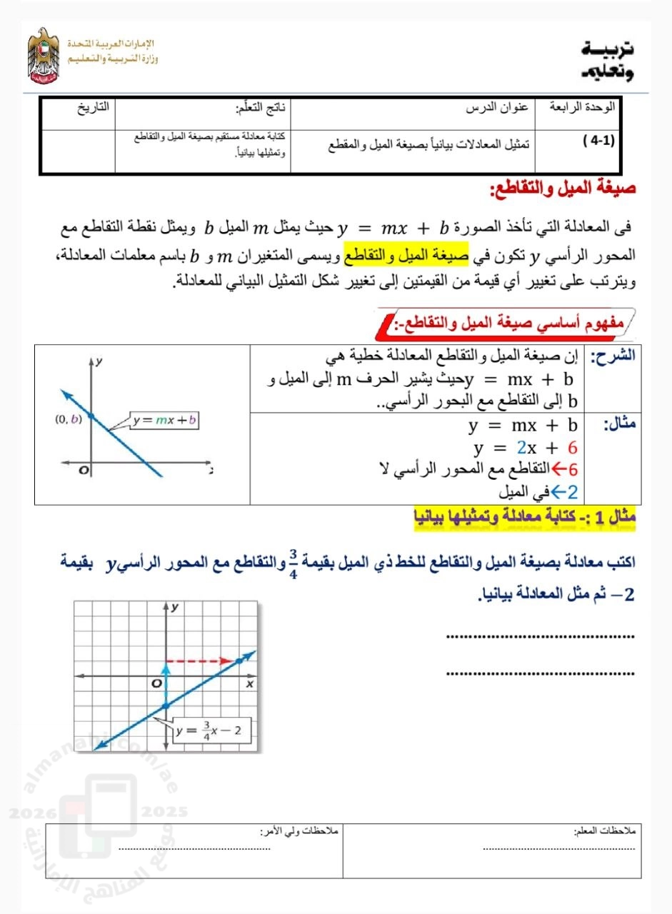 معلومات الملف: ملزمة شاملة الوحدتين الرابعة و الخامسة بدون الحل مقرر الرياضيات - الفصل الدراسي الثاني الوحدة الرابعة: معادلات الدوال الخطية ٠ تمثيل المعادلات بيانياً بصيغة الميل و المقطع ٠ كتابة المعادلات بصيغة الميل و المقطع • المستقيمات المتوازية و المتقاطعة ٠ حل المعادلات والمتباينات المركبة الوحدة الخامسة: المتباينات الخطية ٠ حل المتباينات باستخدام الجمع والطرح ٠ حل المتباينات باستخدام الضرب والقسمة • حل المتباينات متعددة الخطوات ٠ حل المتباينات المركبة وتمثيلها بيانياً | ||