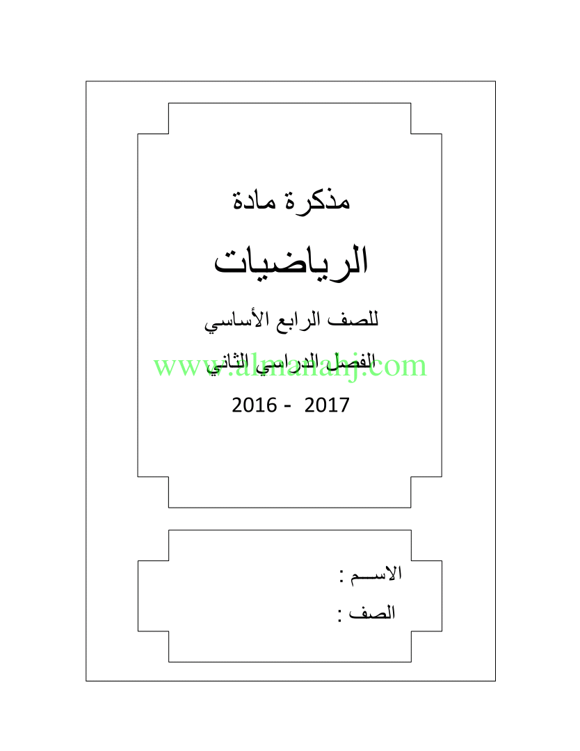 معلومات الملف: الصف الرابع, الفصل الثاني, رياضيات, 2017-2018, مذكرة مراجعة | |||