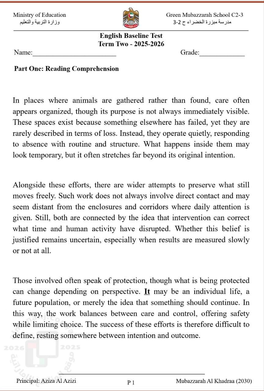 معلومات الملف: أسئلة اختبار Baseline Test متبوعة بالإجابات المسار المتقدم و تشمل مايلي : الفهم القرائي Reading comprehension القواعد Grammar الكتابة Writing المفردات Vocabulary | ||