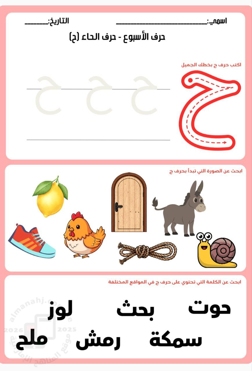 تم إيجاد الملف: أوراق عمل حرف الحاء