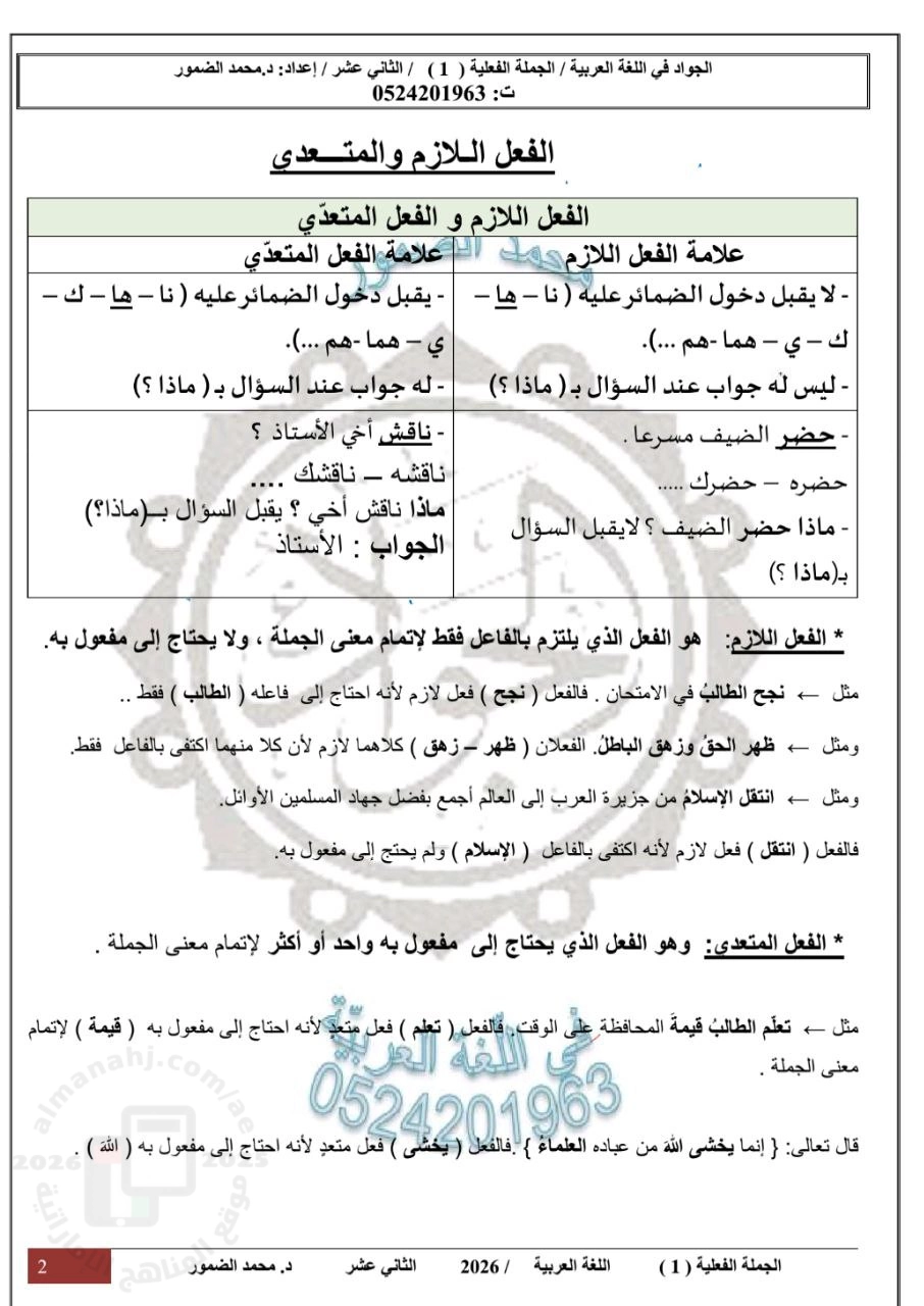 تم إيجاد الملف: ملخص الجملة الفعلية (1) اللازم والمتعدي - الفعل المضارع