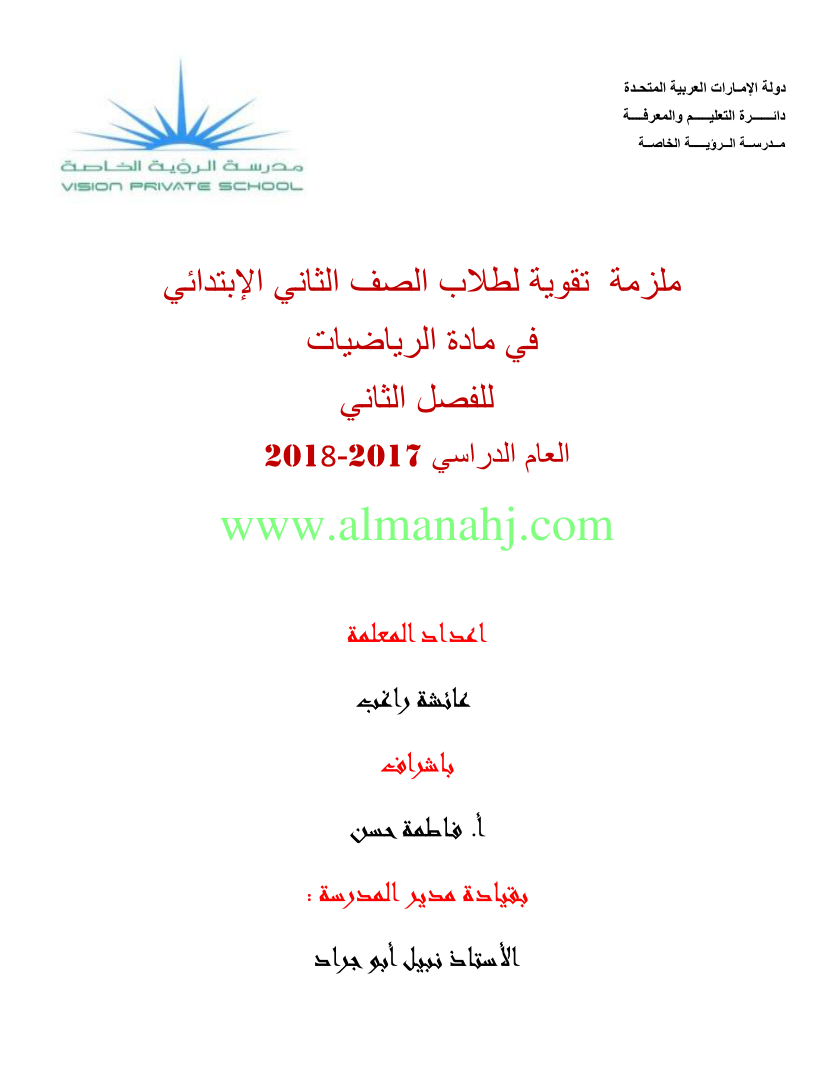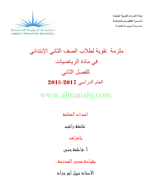 معلومات الملف: الصف الثاني, الفصل الثاني, رياضيات, 2017-2018, ملزمة تقوية في مادة الرياضيات للفصل الدراسي الثاني | |||