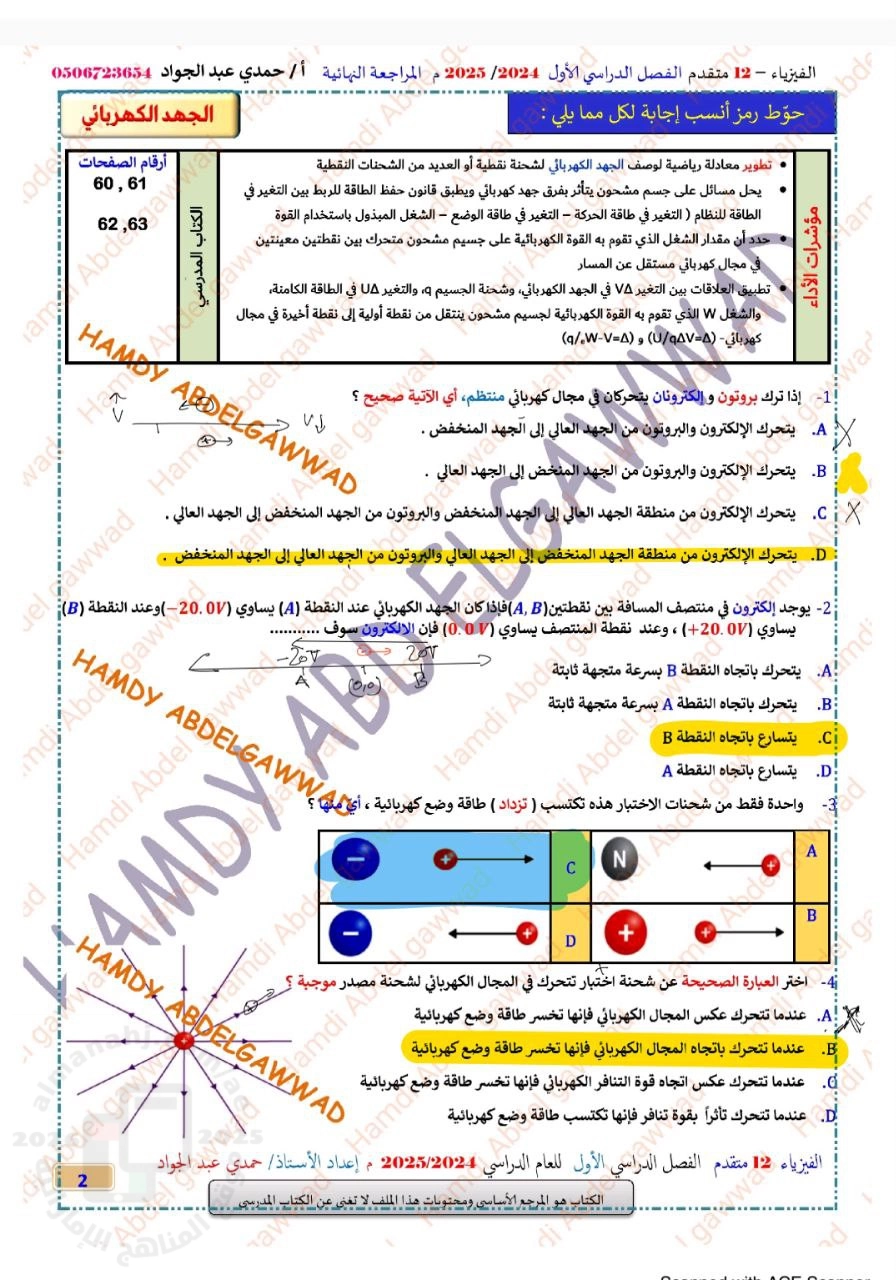| حل مراجعة نهائية وحدة الجهد الكهربائي منهج بريدج - إعداد: حمدي عبد الجواد | |||
