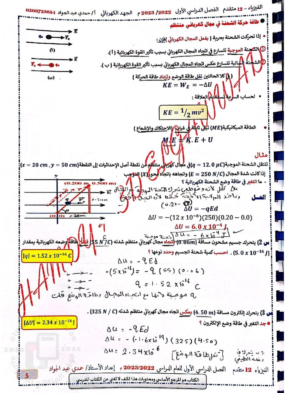 | حل أوراق عمل وحدة الجهد الكهربائي منهج بريدج مع أسئلة امتحانات سابقة | |||