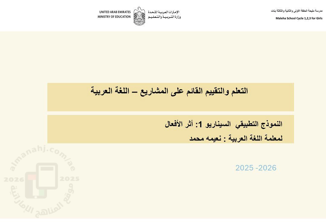 | تحضير النموذج التطبيقي للسيناريو الأول: أثر الأفعال - التعلم والتقييم القائم على المشاريع (الأسبوع الثالث) - إعداد: نعيمه محمد | ||
